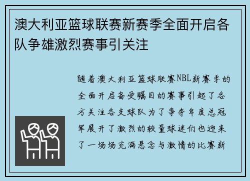 澳大利亚篮球联赛新赛季全面开启各队争雄激烈赛事引关注